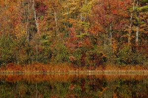 Reflection of Colors Pennwood State Park, Connecticut Fall colors begin to fade as winter approaches, but add an artistic reflection above placid Lake Louise in southern New England. Soon the trees will lose their leaves as they prepare to conserve energy for the long cold months of winter. |